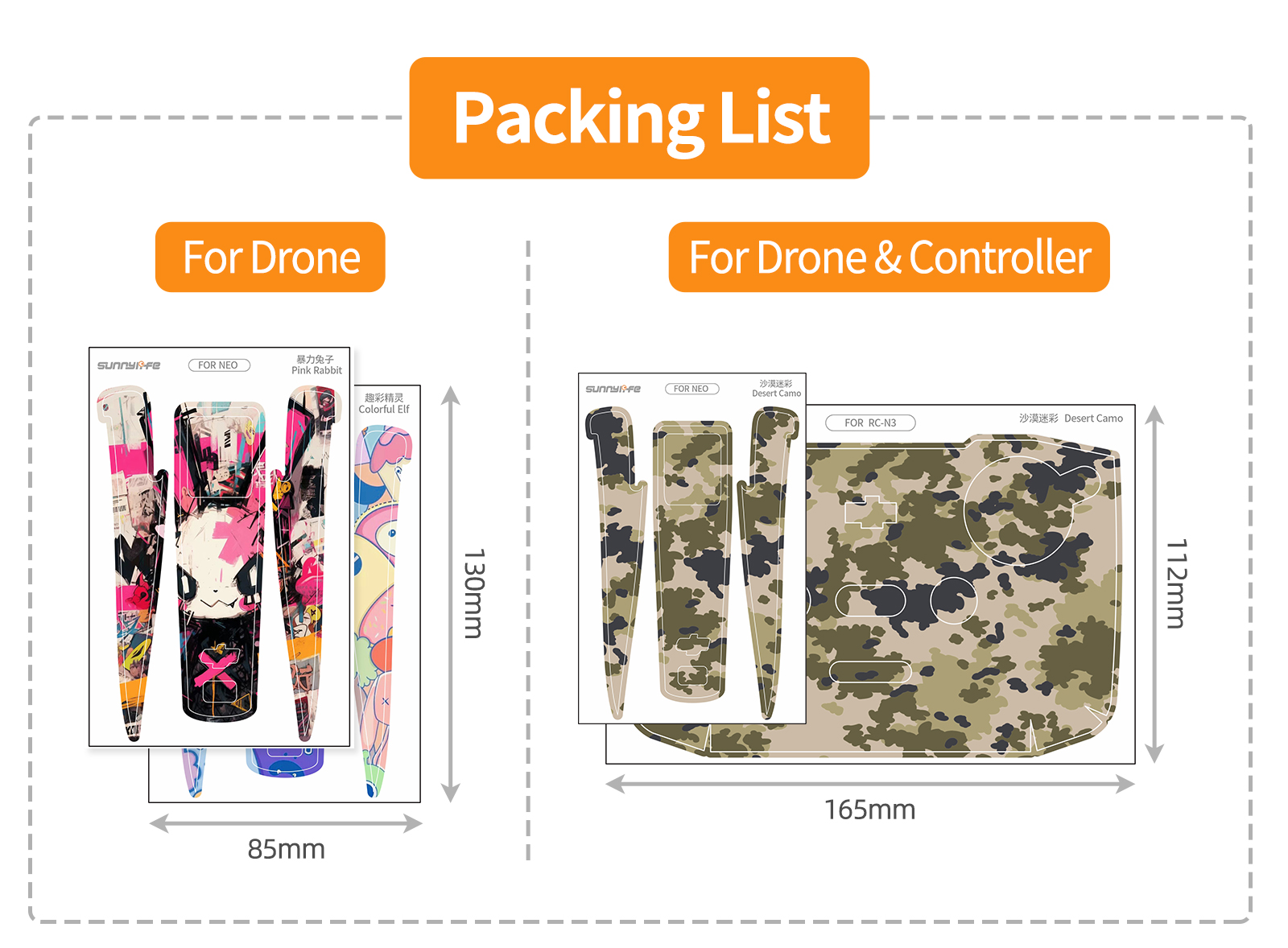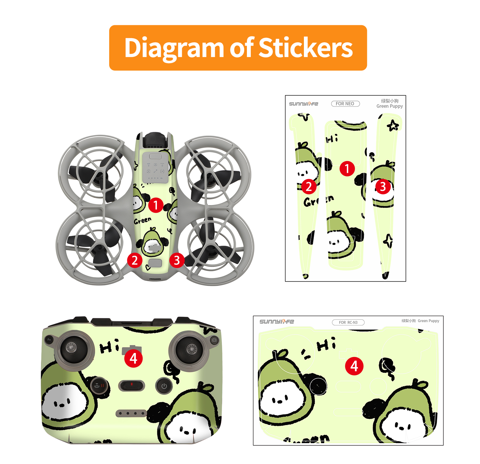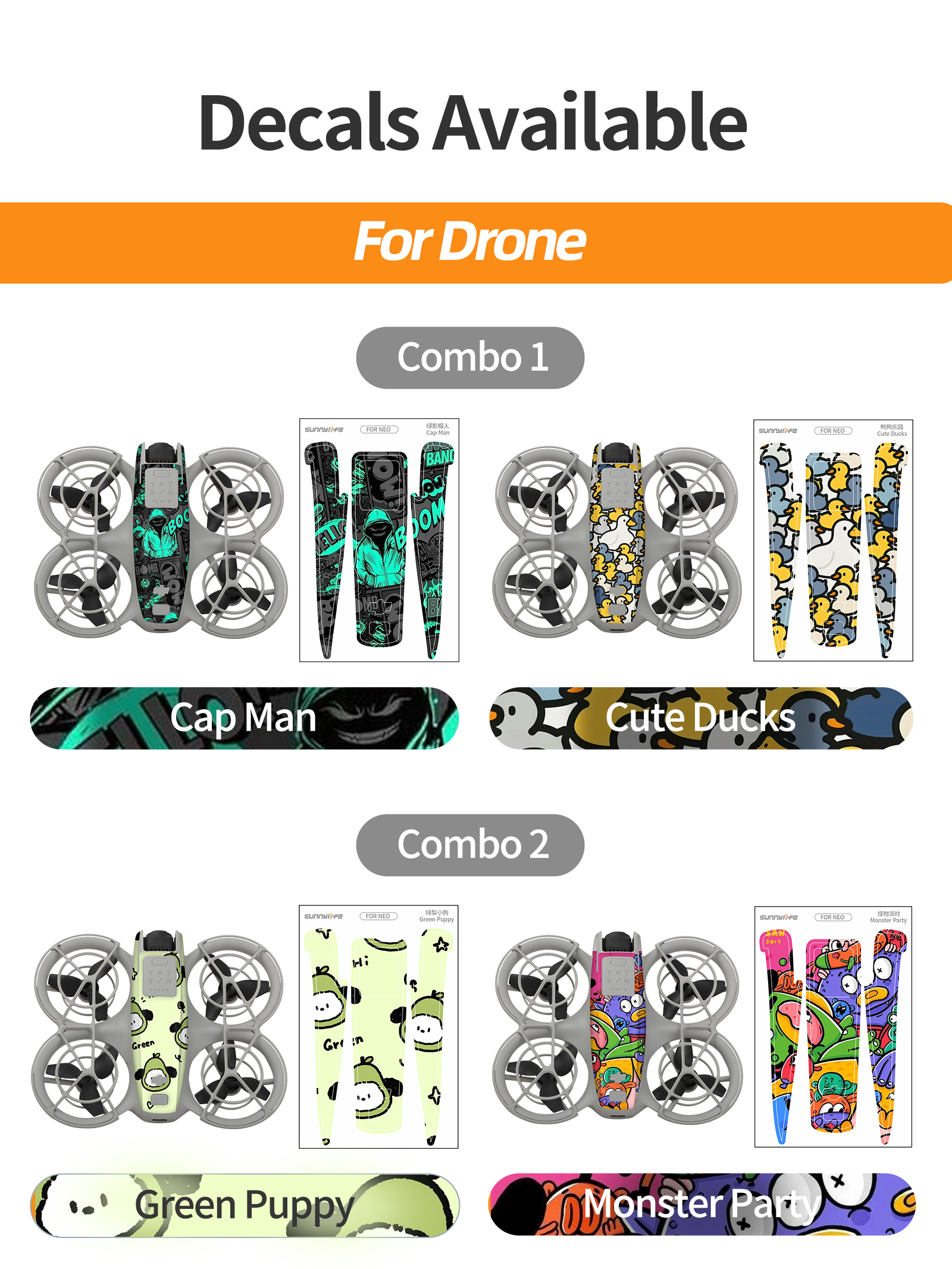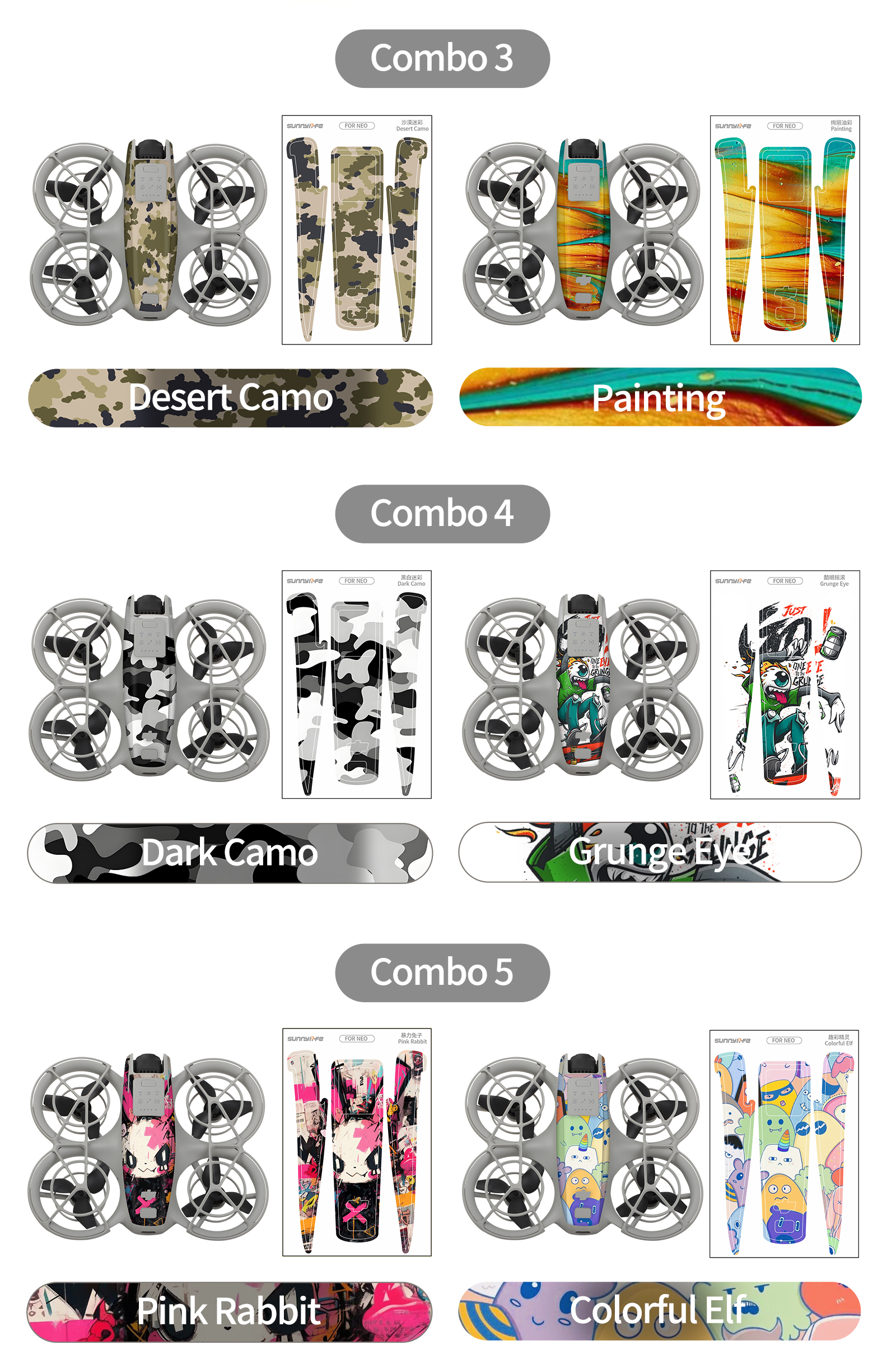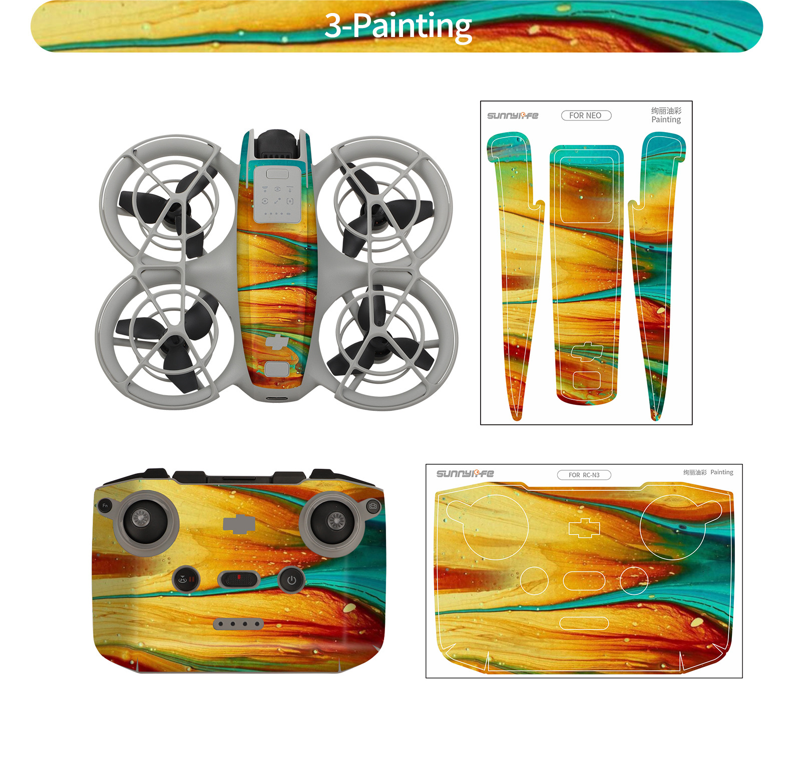 써니라이프 DJI 네오 컬러플 스킨 바디x2SET 콤보 6종/드론+컨트롤러 10종스티커